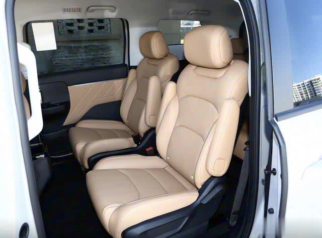 内饰方面,新车采用环绕式布局,提供胡桃棕与暖沙棕两种配色,大面积软质材料包裹搭配金属饰条,营造居家氛围。核心交互区由 12.8 英寸悬浮中控屏与全液晶仪表组成,支持手机互联与场景化模式——露营模式可通过外放电功能供电,小憩模式则一键调节座椅与空调,贴合多场景需求。空间设计2+2+3 七座布局中,第二排独立座椅配备扶手,280mm 宽的过道让第三排进出无需挪动座椅。第三排座椅坐垫长度达 1222mm,靠背可 127 度调节,彻底告别“小板凳”体验。